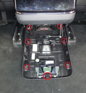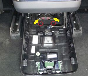 拆下将后控制台脚部空间灯固定到中控台背板的螺钉(2 个)。
