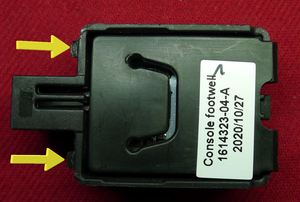 拆下将控制台脚部空间灯固定到中控台背板的两个锁片。