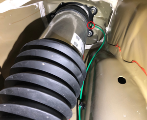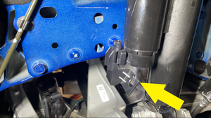 - 断开电气线束与左侧后主动减震器连接器(2 个)的连接,并松开将电气线束固定到减震器的索环。