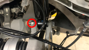 - 松开左侧后主动减震器上的空气悬架管线接头,待空气全部释放后,从减震器上拆下接头。