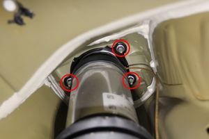 - 拆下并弃用将左侧后主动减震器固定到车身的螺母(3 个)。