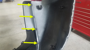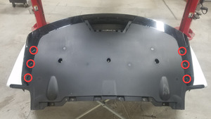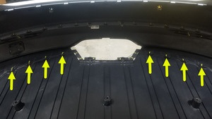 - 将后下部饰板放到后饰板总成上,然后紧固将下部饰板固定到饰板总成的锁片(23 个)。