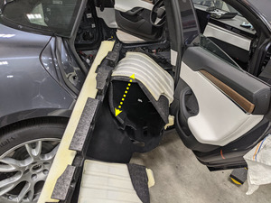 - 部分松开左侧 C 柱下部,以便操作 B 柱下部卡子(4 个)。