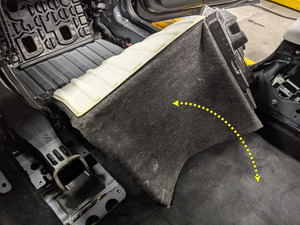 - 松开将地毯固定到第二排座椅门槛上的卡子(3 个)。