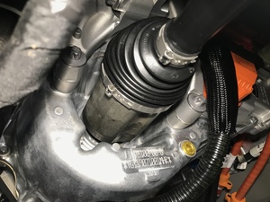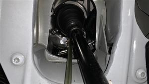 将左侧前半轴安装到前驱动单元中,然后将半轴用力压入驱动单元,使半轴完全就位。