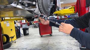 - 使用液压轮毂拉拔器将左侧前半轴从左侧前轮毂花键上松开。