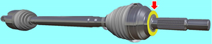 - 如图所示,在左侧前半轴的外侧面涂抹不超过 1 克的 Molykote M-77。