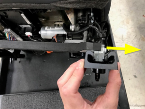 - 撬起滑轨电机桥架锁片,然后将外侧座椅滑轨滑出,以将其与电机桥架分离。
