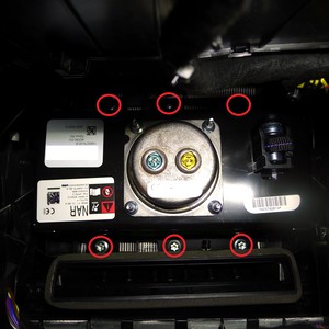 将副驾位安全气囊放置到车内,然后安装新螺栓(6 个),将总成固定到车上。