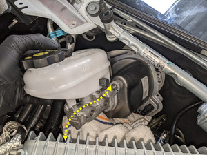 注此时将制动液储液罐软管固定到制动适配器