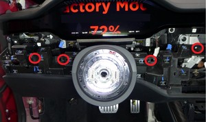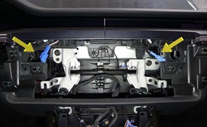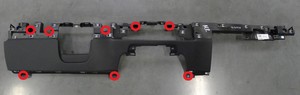 注21 个卡子,6 个固定销,4 个连接器;从仪表板支架上取下所有仪表板装饰连接器卡子,然后从仪表板线束上断开连接器