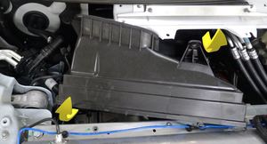 通过左侧减震塔盖板取下清洗器软管喷嘴