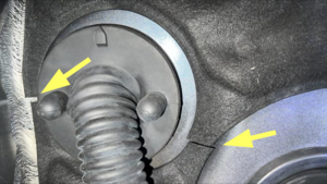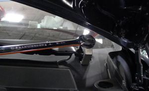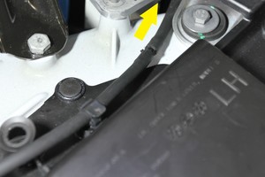通过左侧减震塔盖板固定清洗器软管喷嘴