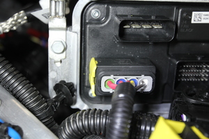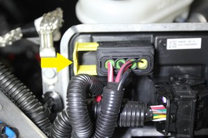 注2 个连接器;首先固定紧急响应回路;连接好低压电池,并将黑色连接器锁向内推动以固定;完全就位后卡入绿色锁片