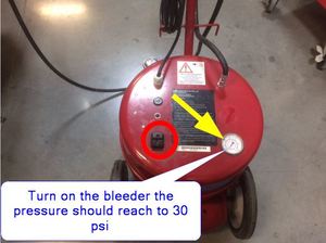 注将电源连接到排放器,打开电源,将压力设定为 30 psi