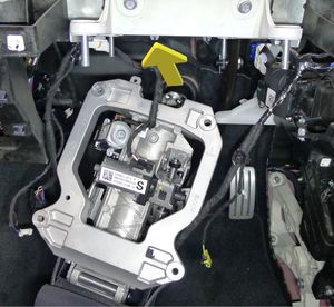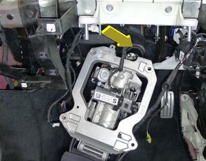 将制动踏板对齐 iBooster 杆,然后将 U 型夹销安装到制动踏板总成上