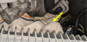 拆卸集液罐,紧固左前制动钳排放阀并安装盖子