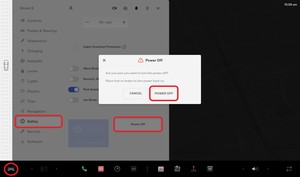 在中央显示器上关闭车辆电源