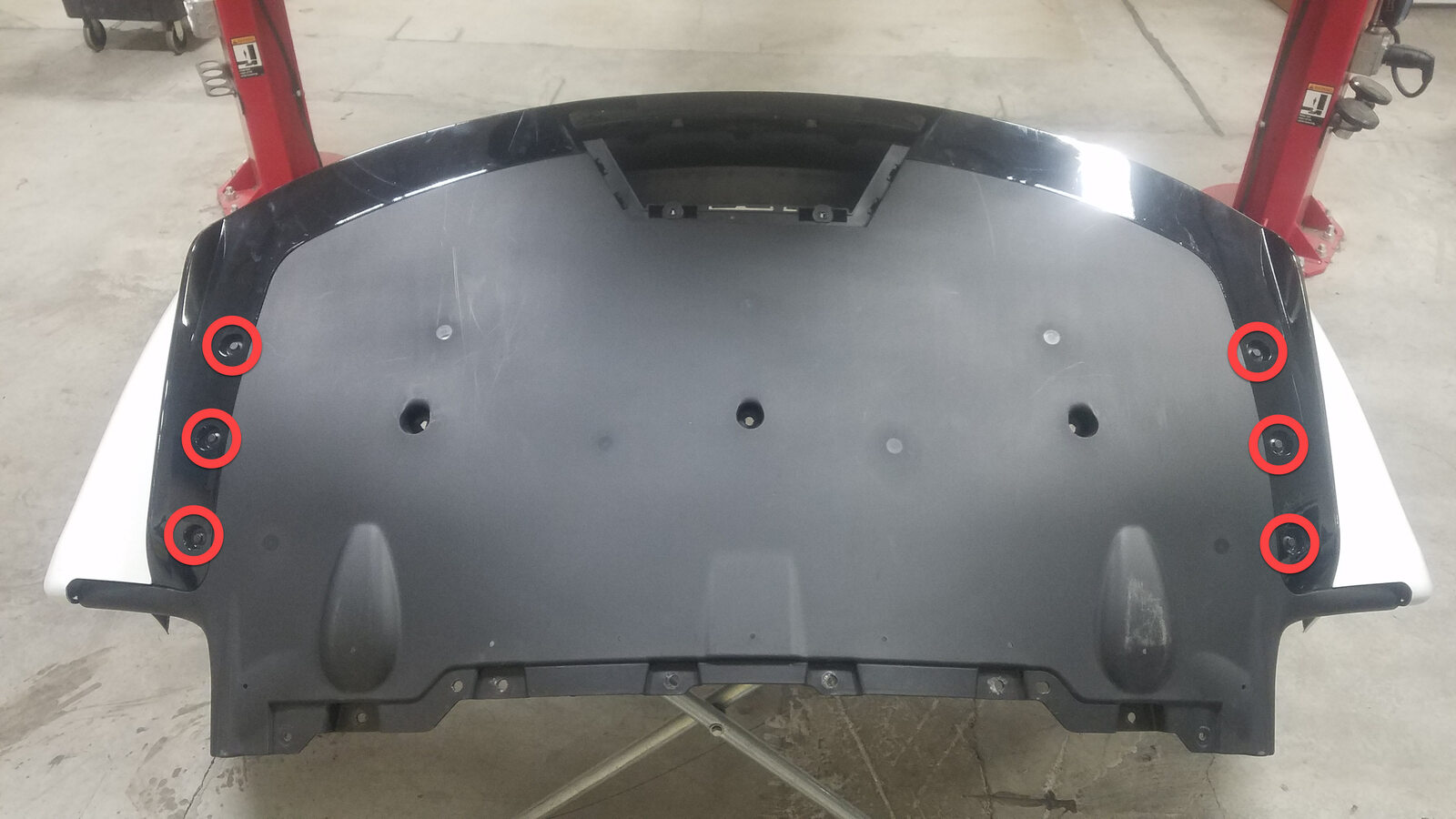 注Plastic screws are captive. Be careful to avoid damage. - Place the rear fascia assembly upright on workbench.