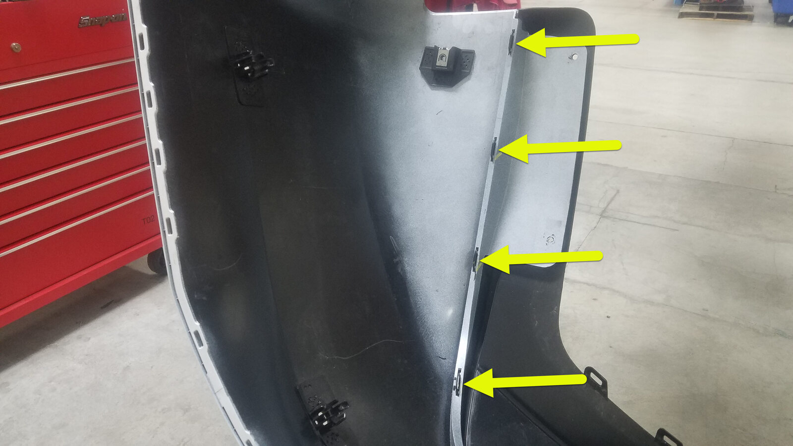 - Place the new rear fascia assembly upside down on flat and protected surface.