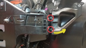 轻轻松开将前备箱线束固定到左侧车灯支架的卡子(2 个)。