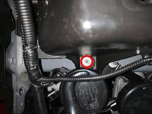 将清洗器储罐放到车架纵梁上,然后安装将储罐固定到车辆上的螺母(3 个)。