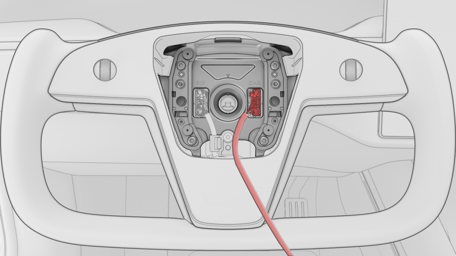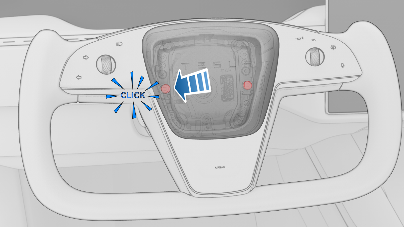 虽然示意图展示的是 yoke 方向盘,但本程序对带 yoke 方向盘和圆形方向盘的车辆均适用。不过,两个版本车辆上的驾驶位安全气囊是不可互换的。