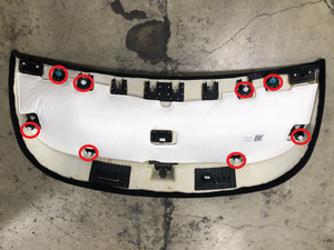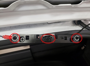 - 连接电气连接器(2 个),然后夹紧将掀背尾门下部饰板固定至掀背尾门的卡子(8 个)。