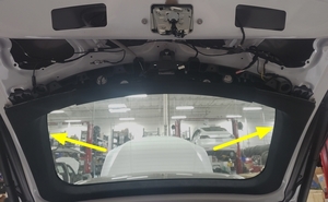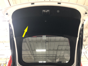 注从掀背尾门上部饰板拆下高位制动灯支架。(2 个卡子)。