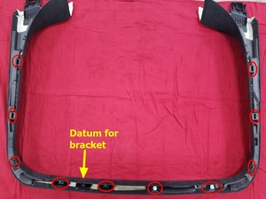 注先将饰板一侧用卡子固定白车身 (BIW) 支架上,接着夹紧中间的卡子,然后将其余的饰板夹固定到 BIW 支架上。