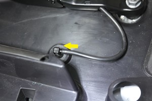 连接左侧雨刮器臂软管与清洗器喷嘴。