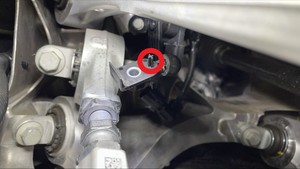 安装将左侧后行驶高度传感器固定到副框架的螺栓。