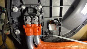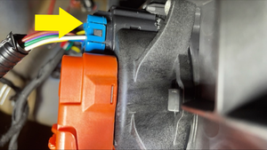 注Carefully remove the white locking tab, press the tab to disconnect the electrical connector from the charge port.