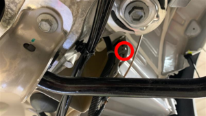 - 将电气线束从左后主动减震器连接器(2 个)上断开,然后松开将电气线束固定到减震器的索环。