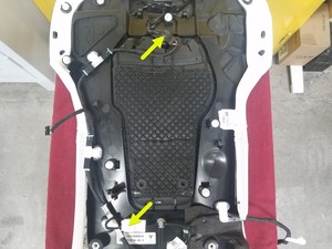 - 连接第二排右侧座椅靠背基板线束电气连接器(2 个)。