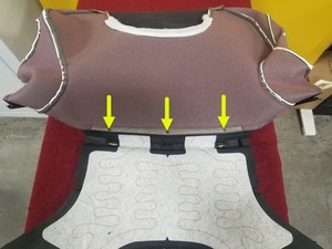 使用拱环钳将 3 个拱环压接到第二排右侧泡沫垫后侧的座垫饰板上。