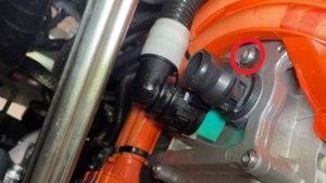 10 Nm (7.4 lbs-ft) - 从接头上取下塞子,立即将前驱动单元变流器进口软管连接到前驱动单元变流器,紧固卡子,然后对接头进行推拉推测试。