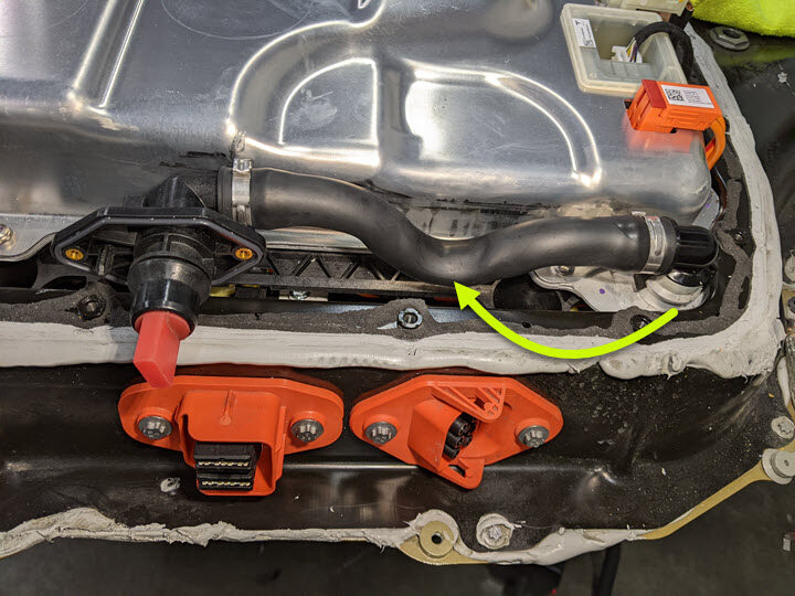 power conversion system inlet hose to the HV battery front access cover, and then push