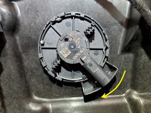 - 将左侧后车门压力传感器放在封闭板上,然后顺时针转动,将传感器固定到封闭板。确认传感器锁定到位。