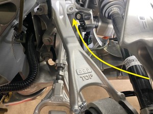 拆下将行驶高度传感器臂固定到左侧上部前连杆的螺栓。