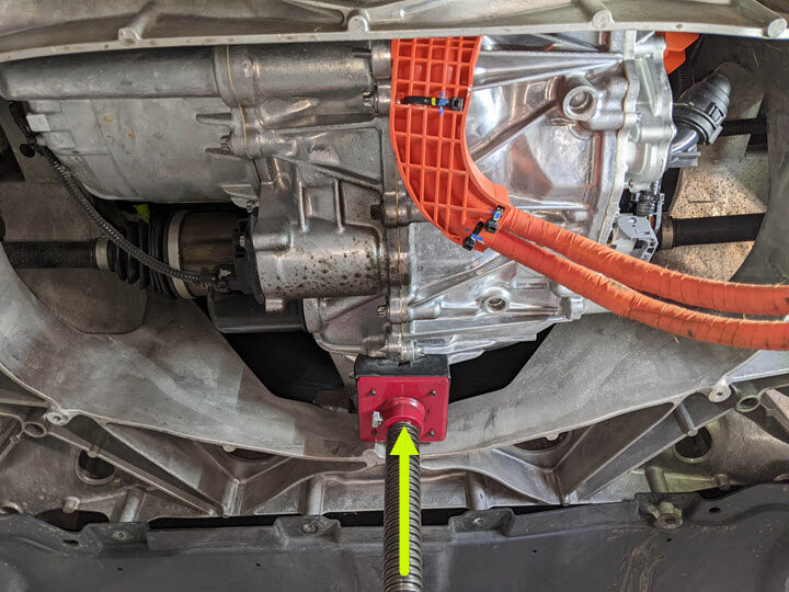 - 将冷却液排放收集器放置在后驱动单元变流器下方。