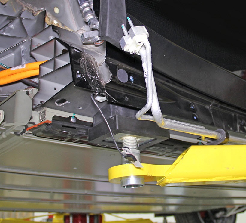 - Release the front portion of the rocker high/low pressure pipes assembly, slide the assembly forward, then rotate the assembly away from the vehicle.