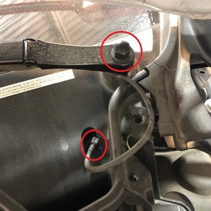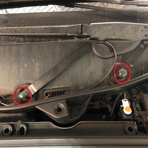 Note2x nuts, 17mm, 35 Nm, Disconnect washer hoses at cowl