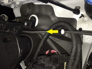Note1x nut, 17mm, 35 Nm, Disconnect washer hoses at cowl