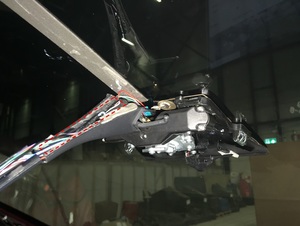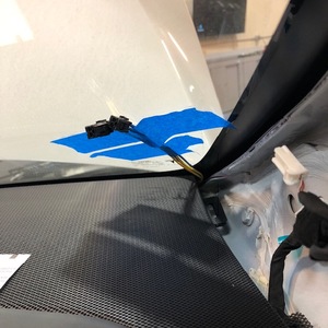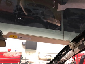 Note2x screws, T20, 2 Nm, 3x clips, Lower headliner just a bit for accessing connectors and avoiding damage while cutting windshield, Starting from front middle