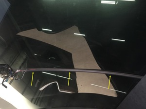 of windshield at the following points: Windshield to roof applique, Windshield to