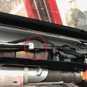 NoteCover assembly is clipped into windshield harness bracket, Make sure 12V harness is routed inside the cover guide