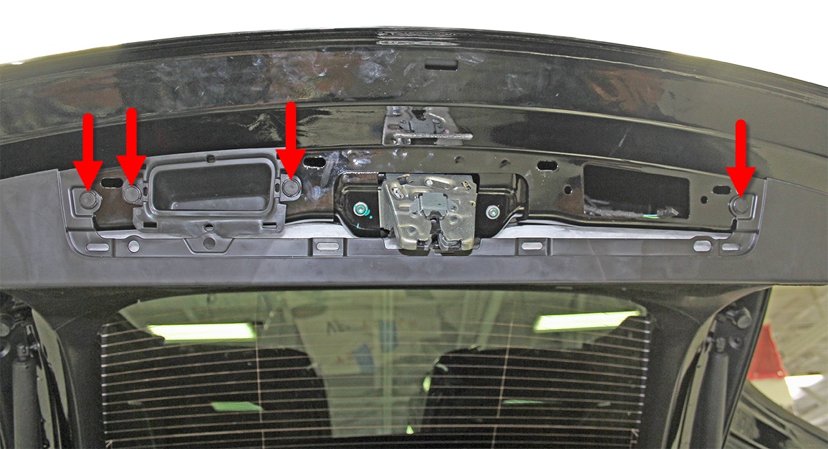 - Remove the push clips (x4) that attach the bottom of the middle liftgate trim to the liftgate.