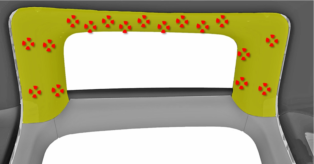 - Carefully release the clips (x17) that secure the rear upper door trim panel, but do not fully remove the trim panel from the vehicle.