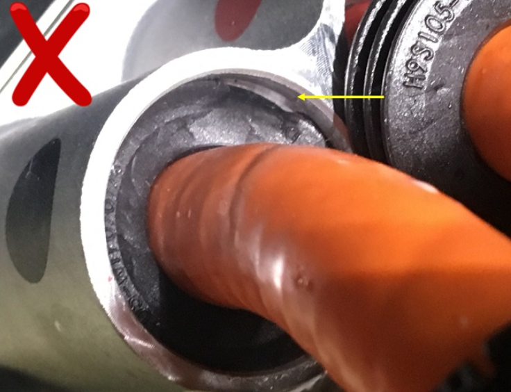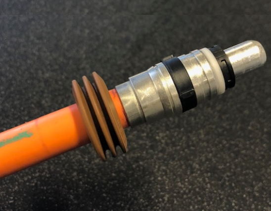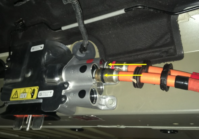 - Install the O-ring on the HV harness O-ring installation tool (found in the Rapid splitter tool kit), and then use the tool to install O-rings on the B+ and B- FJB HV cables.